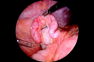 Laparoscopy is an operation performed in the abdomen or pelvis using small incisions (usually 0.5–1.5 cm) with the aid of a camera. Laparoscopic surgery, also called minimally invasive surgery (MIS), band-aid surgery, or keyhole surgery, is a modern surgical technique. There are number of advantages to the patient with laparoscopic surgery versus an exploratory laparotomy. These include reduced pain due to smaller incisions, reduced haemorrhage and shorter recovery time. The key element is the use of a laparoscope, a long fibre-optic cable system that allows viewing of the affected area by snaking the cable from a more distant, but more easily accessible location.